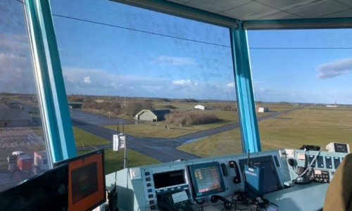 De bestaande zonweringsystemen bij de vliegbasis in Leeuwarden waren verouderd en toe aan vervanging. Men had de eis dat het zicht op de vliegbewegingen van de F-35’s perfect bleef in combinatie met een goed zicht op de beeldschermen in de toren. Dit is eenvoudig te realiseren met onze MULTIFILM folieschermen. De keuze voor de folie is gevallen op blauw/blauw, met een lichttransmissie van 7% en ongestempeld. Met dit doek heb je een perfecte doorzicht naar buiten en geen last van licht op de beeldschermen.