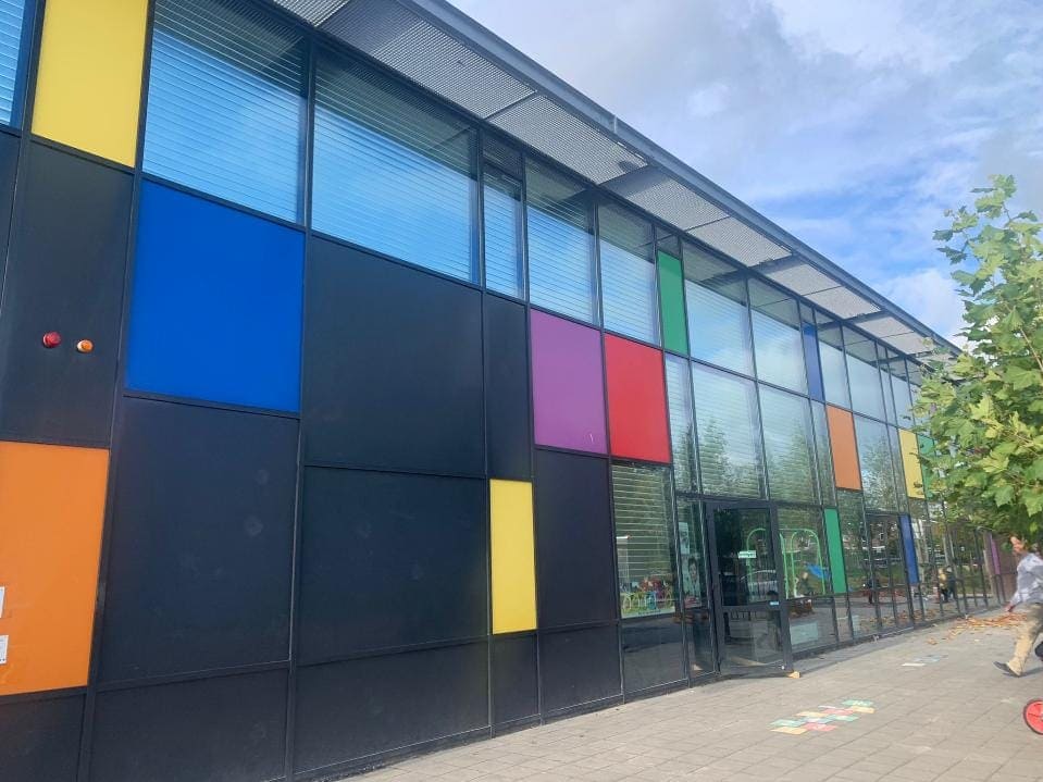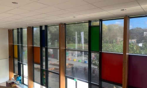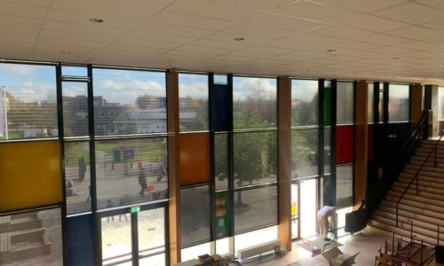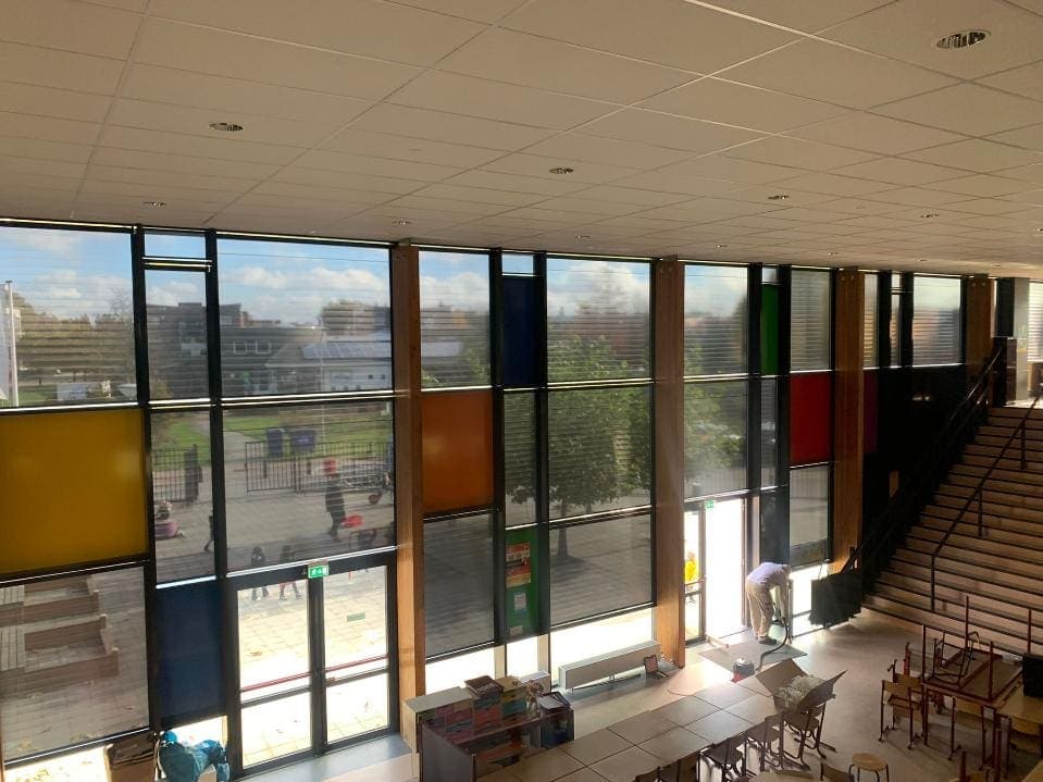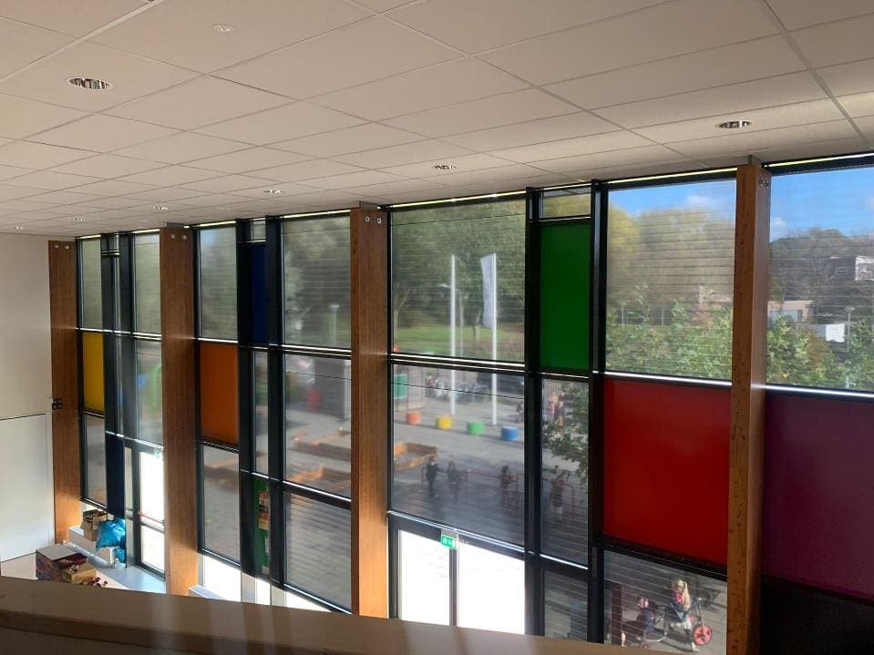 Stichting de Waarden zocht naar een oplossing voor de warmte & lichtwering bij basisschool De Regenboog. De perfecte oplossing hiervoor is MULTFILM zonwering. Door de hoge reflectiewaarden van het folie doek kan er tot 88% warmte geweerd worden. Daarnaast heeft het folie van MULTIFILM een speciaal thermisch stempelproces. Dit zorgt dat het licht diffuus wordt gemaakt. Hierdoor is het licht dat doorkomt ‘onschadelijk’ gemaakt.