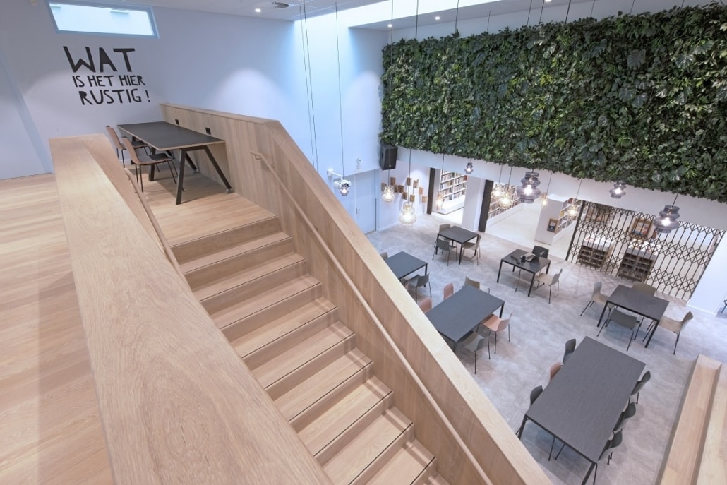 Door het plaatsen van de nieuwe schaarhekken wordt de algemene ruimte afgesloten van de boekenkasten en computers. Hierdoor zijn de betreffende spullen extra beveiligd na sluitingstijd.